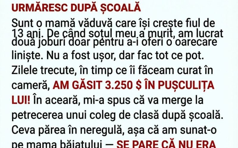 Nu o să uit niciodată șocul pe care l-am trăit când am găsit 16.500 de lei băgați în pușculița fiului meu de 13 ani. Mi-a înghețat sângele. De unde putea el să aibă atâția bani? Hotărâtă să aflu adevărul, l-am urmărit după școală — și ce am descoperit mi-a frânt inima… în cel mai frumos mod posibil.
