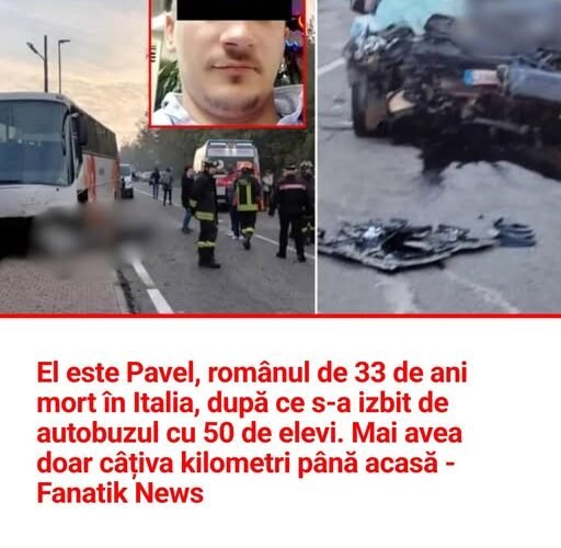 Pavel este românul în vârstă de 33 de ani, care și-a găsit sfârșitul în Italia, în urma unui accident rutier. Tragedia s-a petrecut după ce