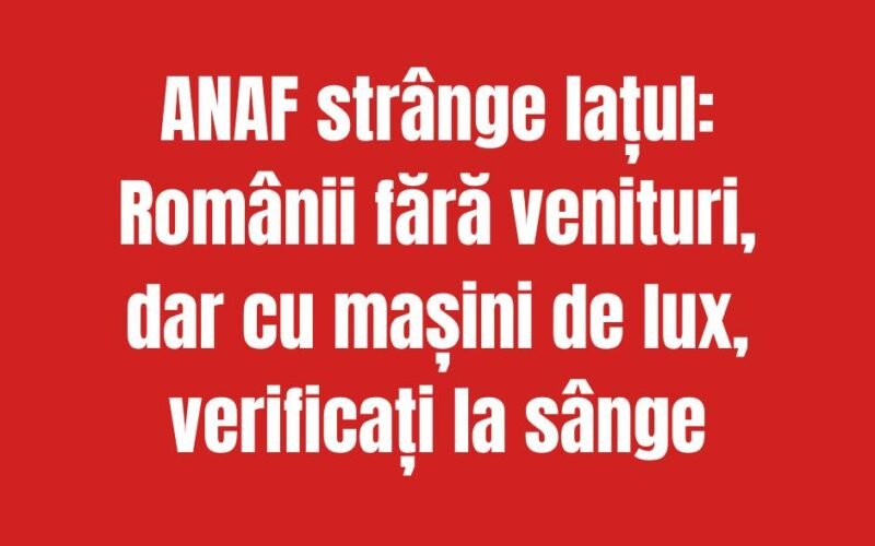 Agenția Națională de Administrare Fiscală (ANAF) a anunțat declanșarea unei ample acțiuni de control care îi vizează pe românii fără venituri declarate, dar care conduc