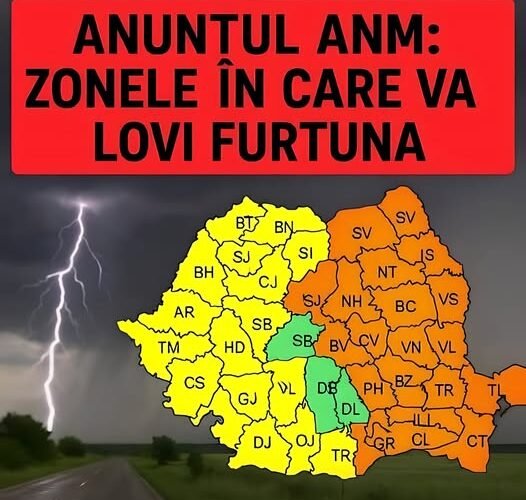 Administraţia Naţională de Meteorologie a emis astăzi, 9 iunie 2025, avertizări meteo imediate de Cod roșu și Cod portocaliu pentru mai multe județe din țară. Sunt prognozate averse torențiale, grindină