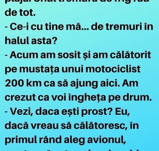 Doi purici se întâlnesc pe plajă. Unul tremură de frig rău de tot.– Ce-i cu tine mă …de tremuri în halul ăsta? – Acum am